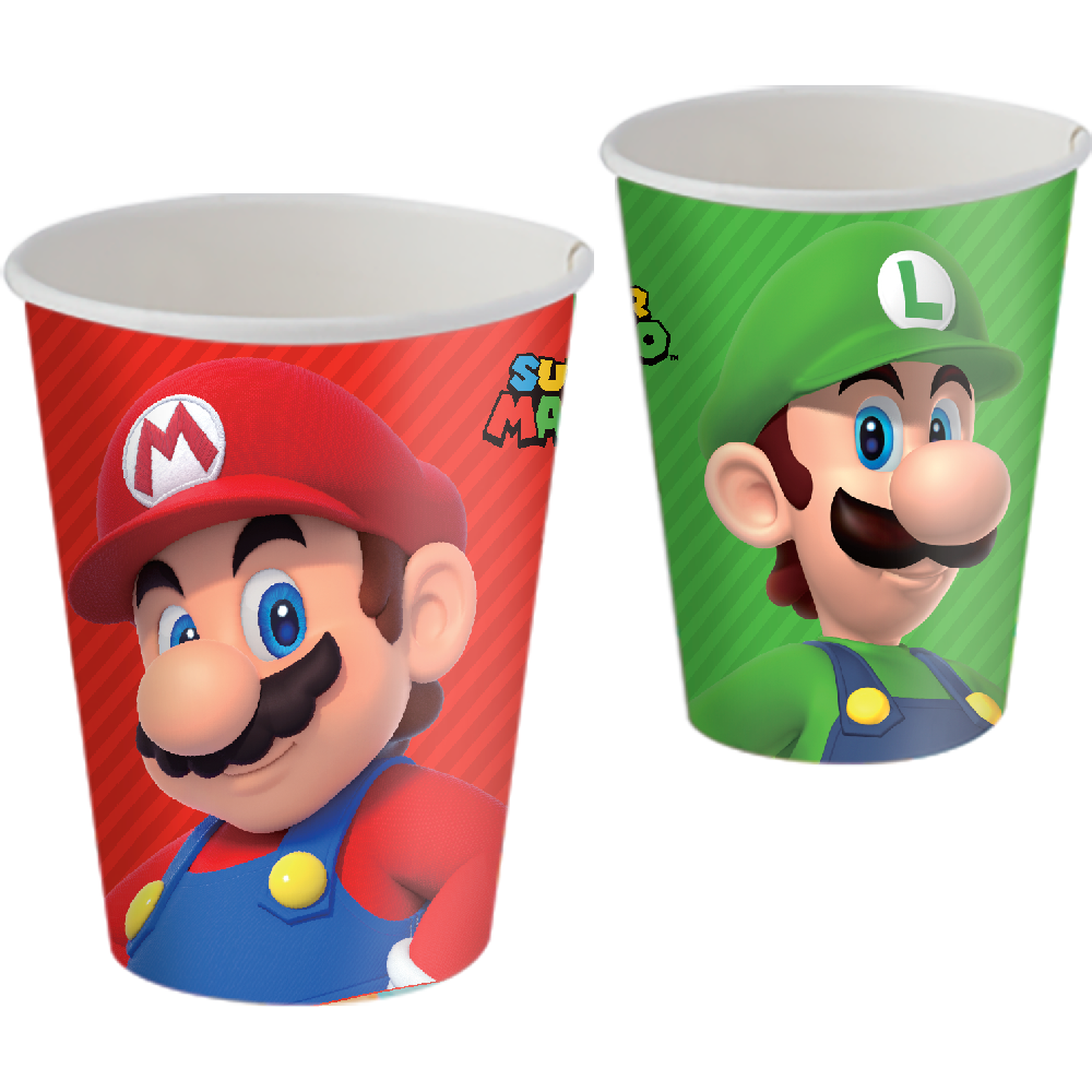 A Festa Super Mario é perfeita para os fãs do encanador mais famoso dos games! Também conhecida como Festa Mario Bros, Festa Luigi, Festa Nintendo ou Festa Games, essa temática traz uma decoração vibrante e divertida com as cores icônicas vermelho, azul, verde e amarelo, inspiradas no universo do Mario e seus amigos. Com um design que remete aos cenários e aventuras do jogo, esses copos descartáveis são ideais para deixar a mesa ainda mais temática e cheia de diversão.