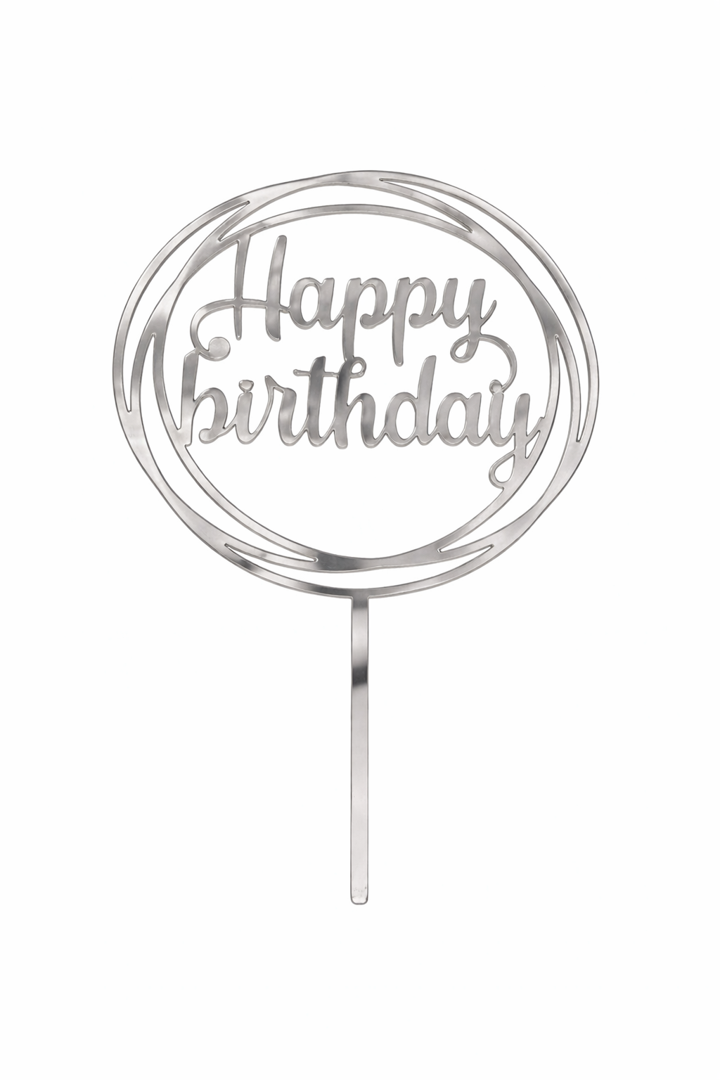 O Topo de Bolo Acrílico Happy Birthday Redondo Prata é perfeito para celebrar aniversários com elegância e brilho. Produzido em acrílico de alta qualidade, possui acabamento prata brilhante e resistente, trazendo sofisticação para a decoração do bolo e destacando a importância dessa data tão especial.