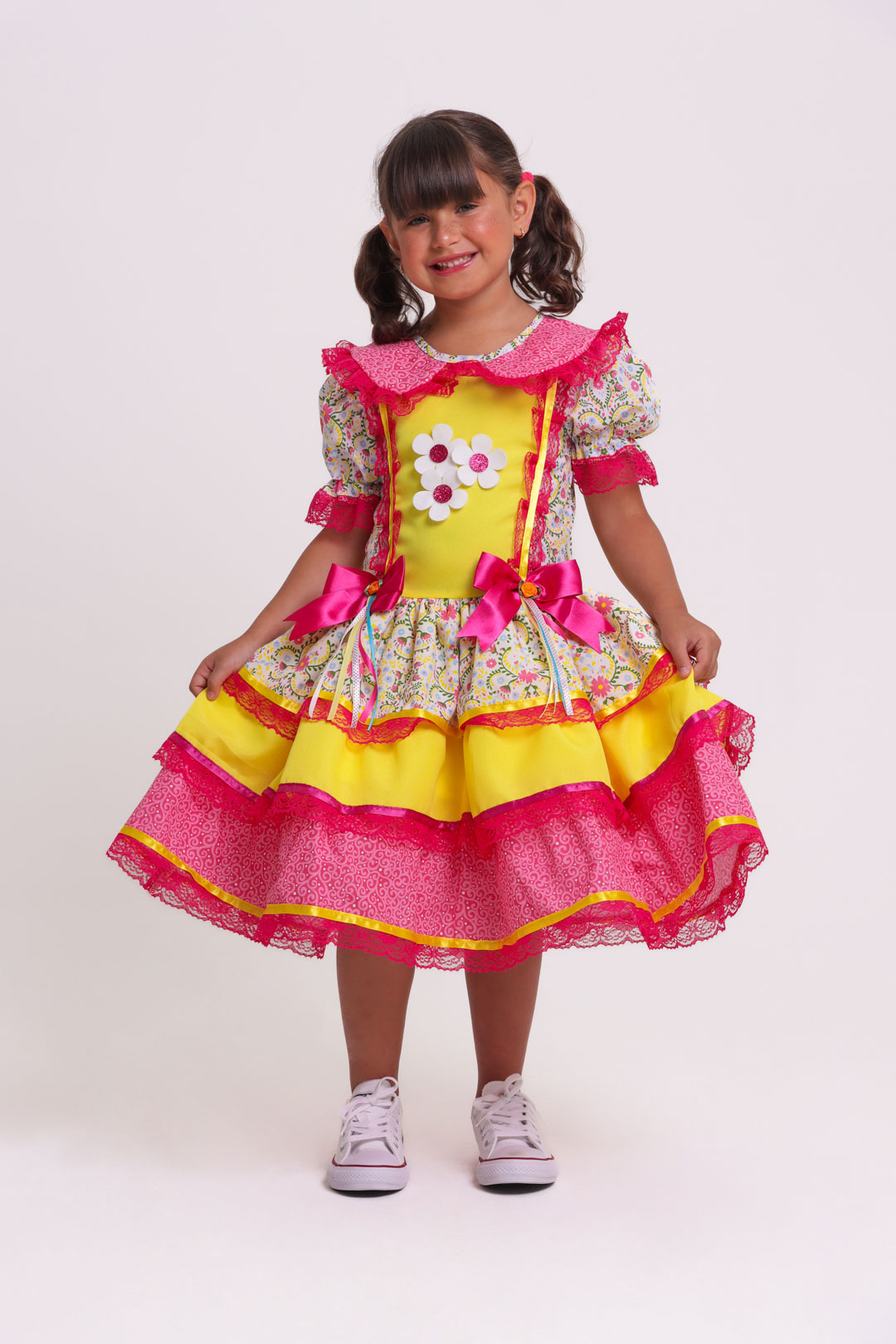 O Vestido Junino Floral Com Detalhe Amarelo é a escolha ideal para deixar as festas ainda mais encantadoras! Com estampa floral alegre e detalhes em amarelo vibrante, ele une tradição e charme para compor um visual típico e especial.
